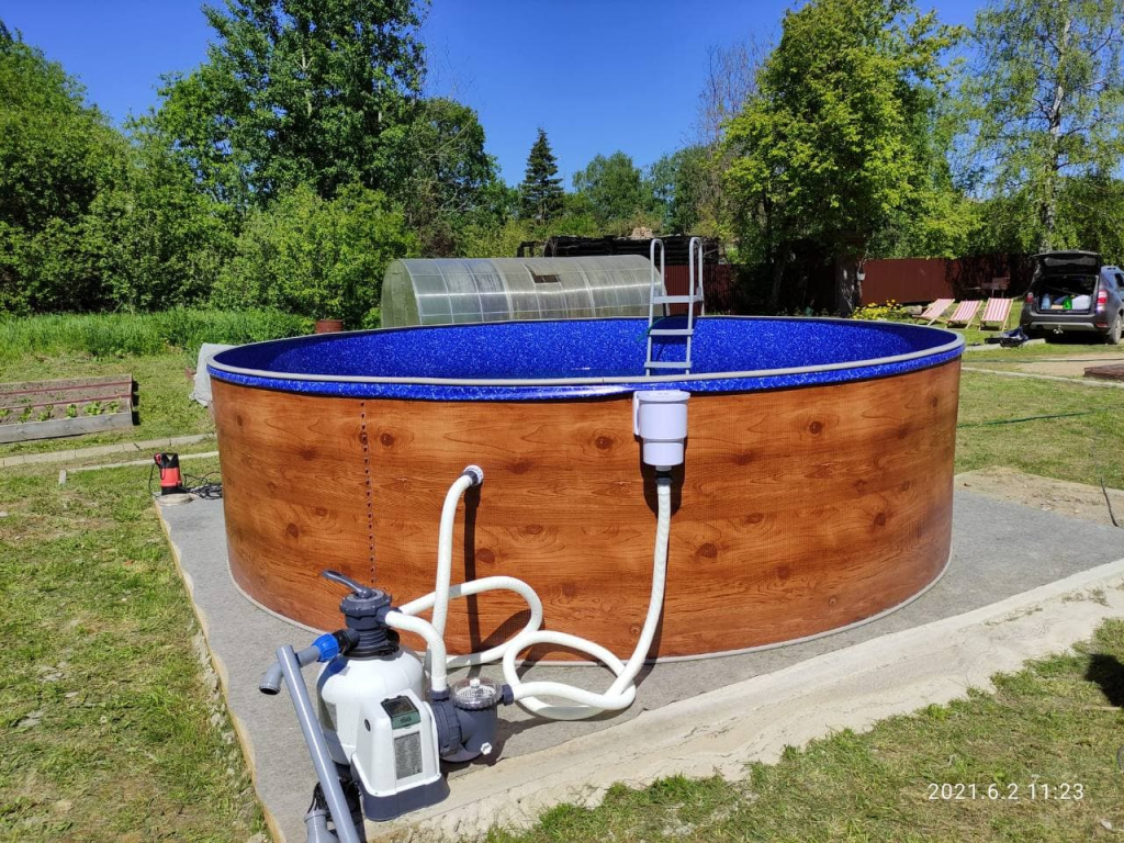 Отзывы к товару "Бассейн Лагуна морозоустойчивый 5.00х1.25м круглый светлое дерево (скиммер, форсунка) 50013":