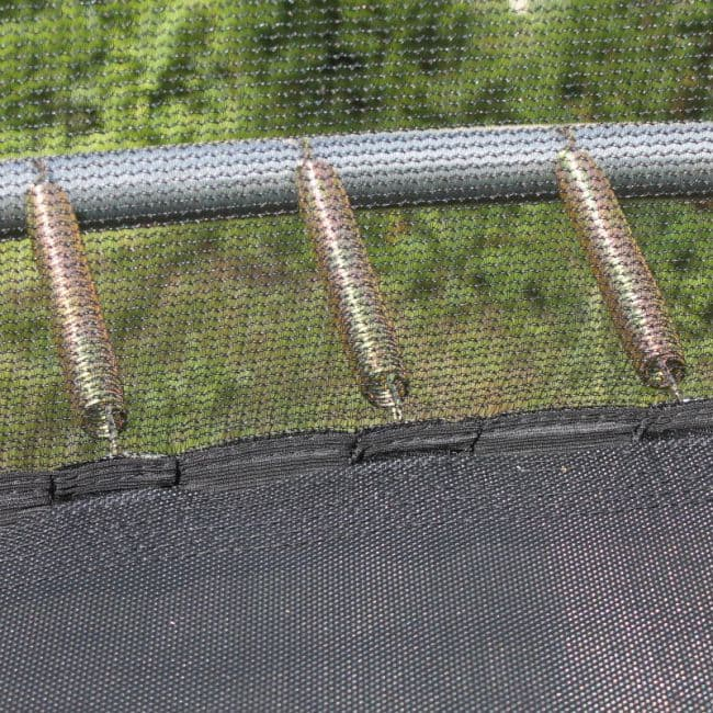 Безопасность с Max-Lock. Благодаря инновационному креплению защитной сетки к прыжковому полотну, была достигнута максимальная защита от попадания в пружинный блок при падении.
