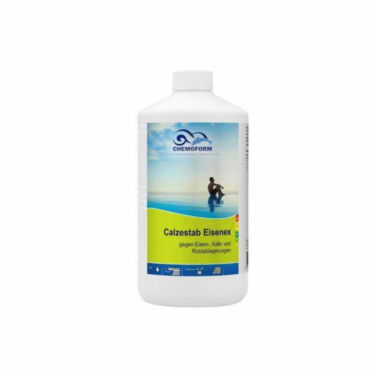 Химическое вещество Calzestab Eisenex предназначено для стабилизации жесткости воды, предотвращает образование известковых отложений на облицовочных поверхностях. Препарат может быть использован и для удаления известкового налета в ванной комнате, туалете. Средство очищает воду от металлических образований, особенно пригоден для грунтовых вод. В составе фосфоновая кислота.