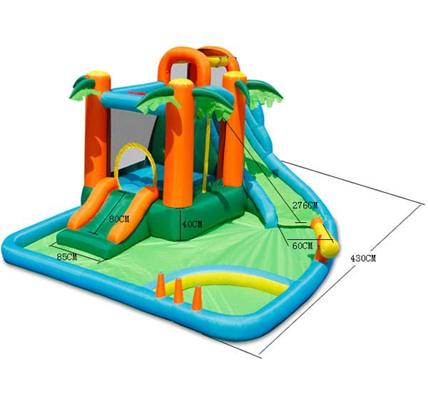 Водный надувной батут Батут HAPPY HOP HAPPY HOP "Тропикана" - это целый аквапарк для вашего ребенка. Надувная горка и водная пушка не оставит никого равнодушным особенно в жару, когда так важно охладиться. Брызги радости и веселья накроют большой волной удовольствия ваших ребятишек. Так же этот батут можно использовать и без воды. Одновременно на батуте могут находиться не более пятерых детей, масса каждого не должна превышать 45 кг.