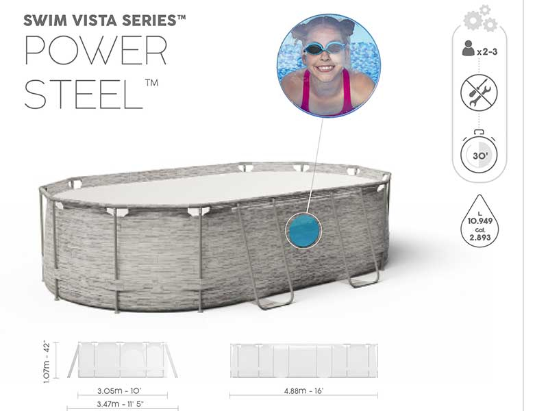 Отзывы к товару "Каркасный бассейн Bestway 56946 Oval Power Steel 488х305х107 см "Серый камень"":
