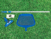 Набор для чистки упрощает уборку вашего бассейна. В комплекте используется сачок для сбора мусора на поверхности воды и специальная насадка-пылесос, которая служит для очистки дна. Насадки крепятся на легкую телескопическую алюминиевую ручку длиной 239 см, обеспечивающую доступ в любую точку бассейна диаметром свыше 457 см. Принцип работы насадки-пылесоса: насадка присоединяется к садовому шлангу, опускается на дно бассейна, где напором воды поднимается осевшая грязь, которая потом поступает в специальный мешочек для сбора мусора. По мере заполнения мешочка грязью, он достается и промывается . Потом  процедура повторяется до полной очистки бассейна. Если Вы купите этот комплект для очистки , то поверхность воды и  дно вашего бассейна всегда будут чистыми.